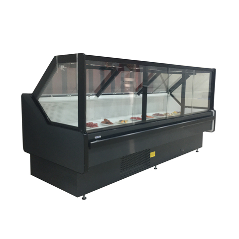 Exibição de canto superfície deli serviço comércio carne fresca frigorífico porta de vidro